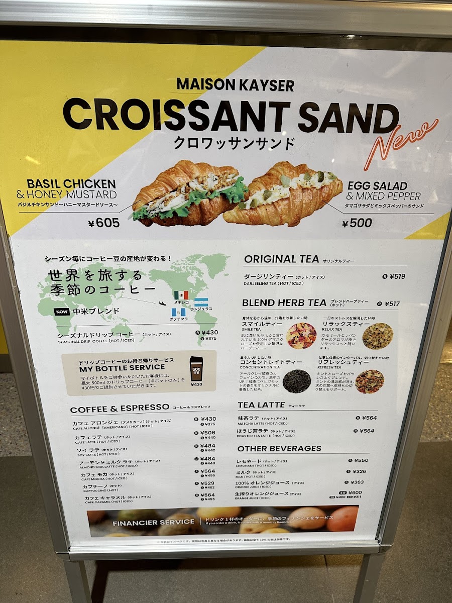 & COFFEE MAISON KAYSER - SUINA Muromachi Shop Menu